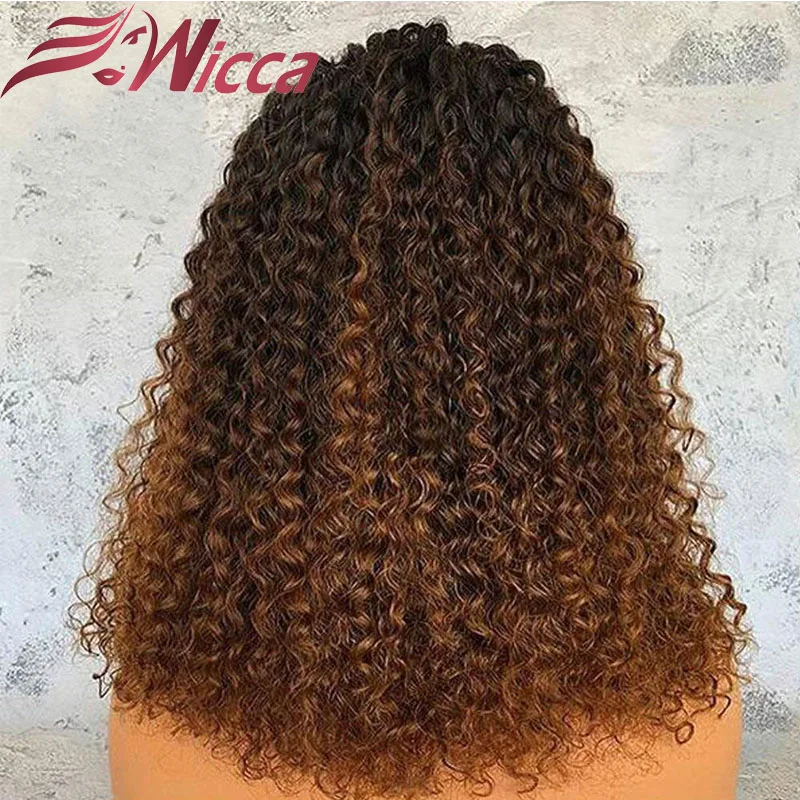 Curly 13X6 Lace Front Human Hair Ombre Highlight Wigs For Women Pre Plucked Natural Hairline With B